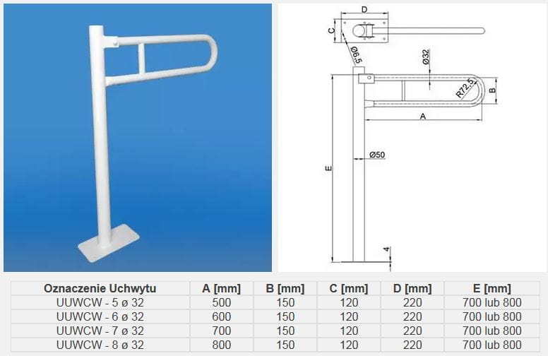 Uchwyty uchylne wolnostojące zwiększają mobilność, są pomocne w zachowaniu równowagi.