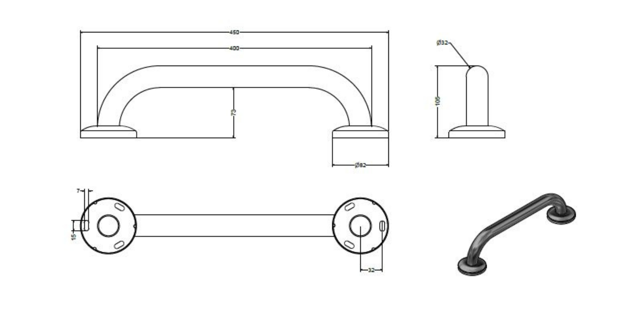 Poręcz dla niepełnosprawnych prosta 40cm Ø32 mm