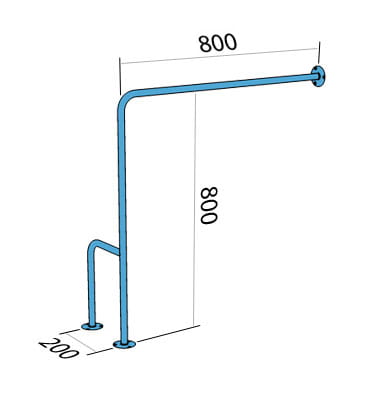 Poręcz dla niepełnosprawnych ścienno podłogowa prawa 80/80 cm Ø32 mm BIAŁA