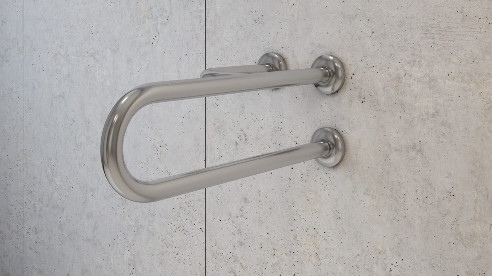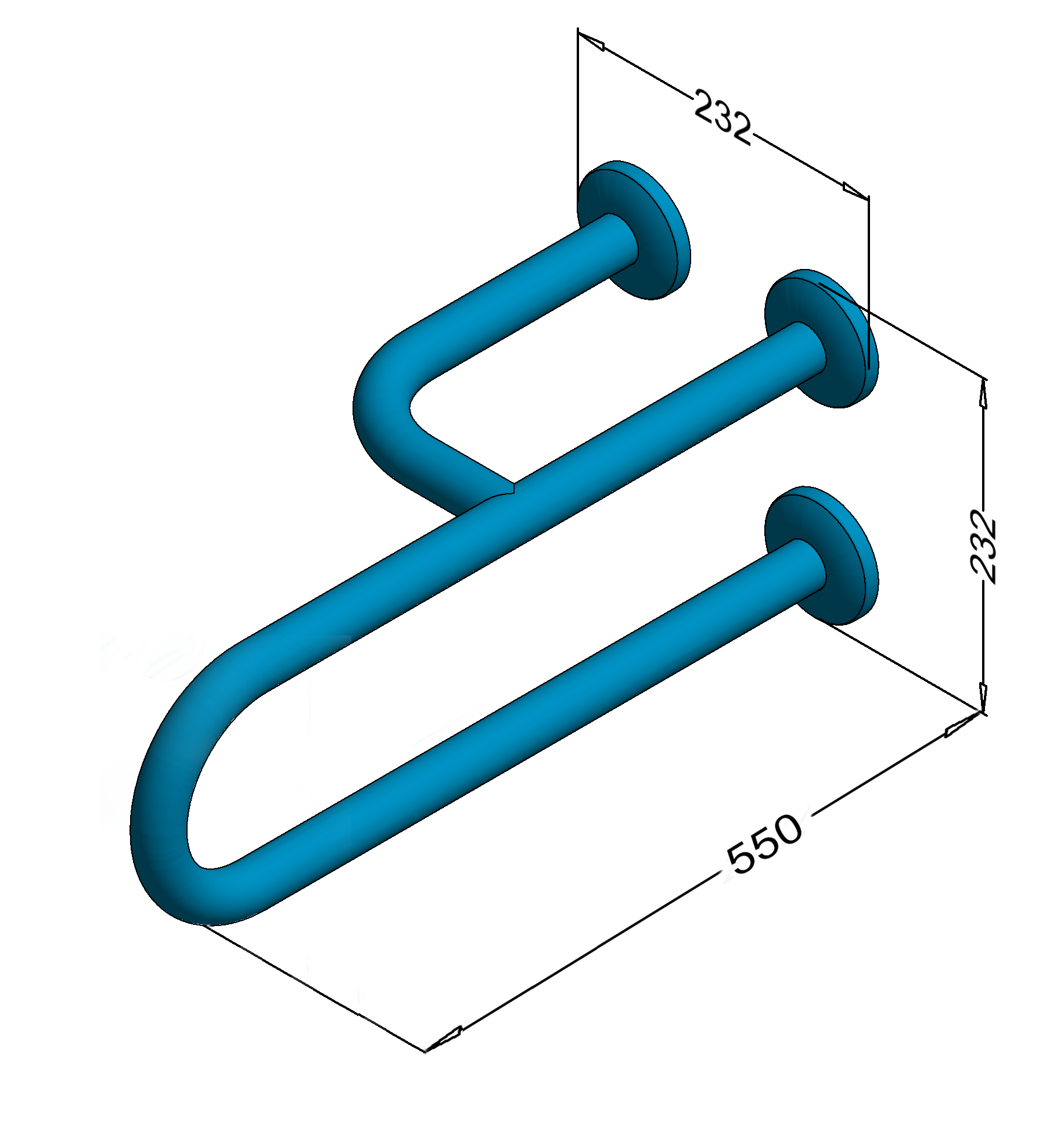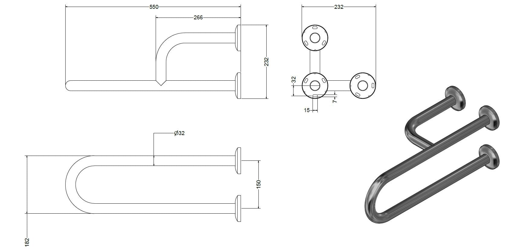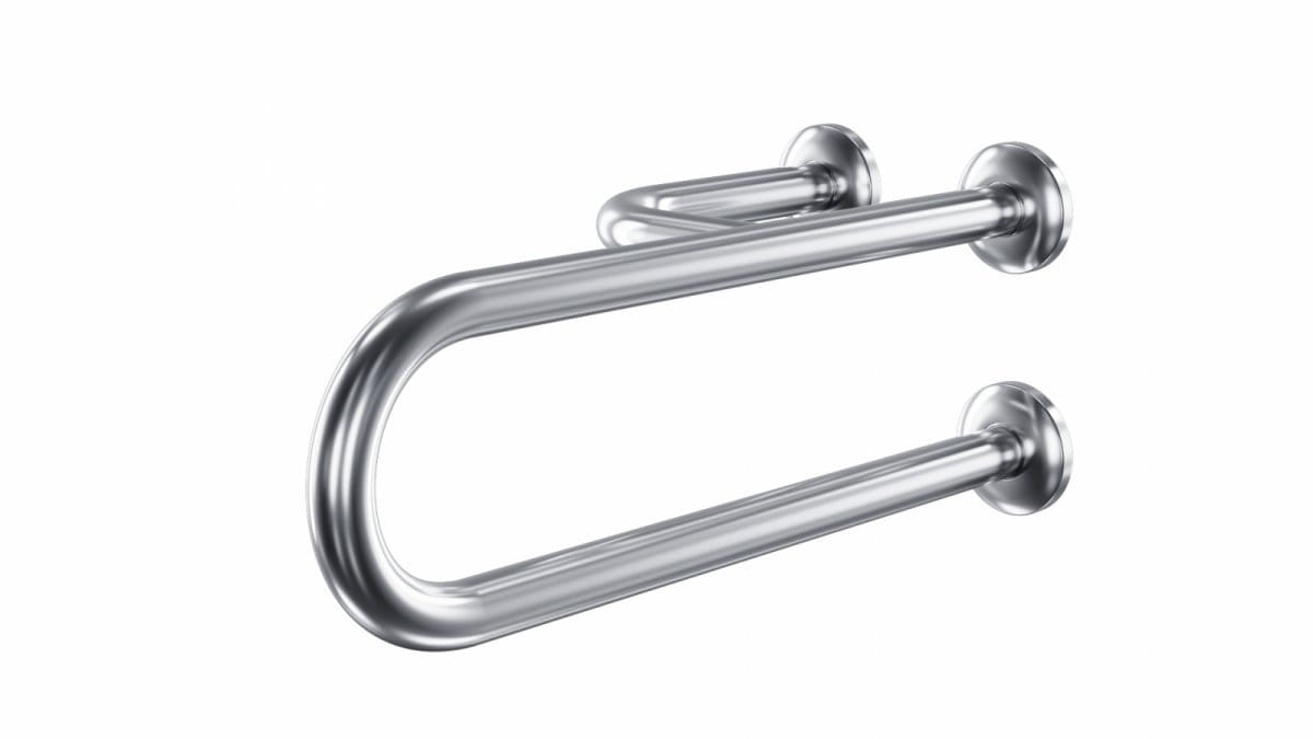 Prezentowana poręcz ma zastosowanie w strefie umywalkowej. Rurka służąca do jej wyprodukowania jest wykonana ze stali nierdzewnej o średnicy 32 mm.Interesującym rozwiązaniem jest zastosowanie systemu zatrzaskowego w rozetach maskujących. Pozwala to zamontować rozety bez użycia kleju montażowego.