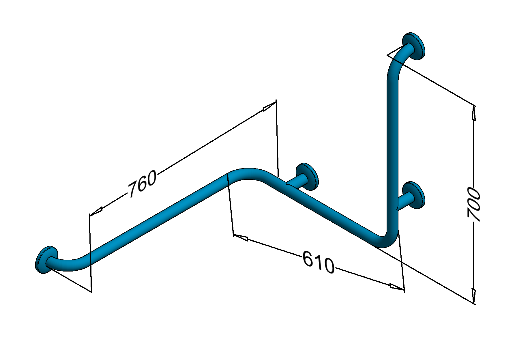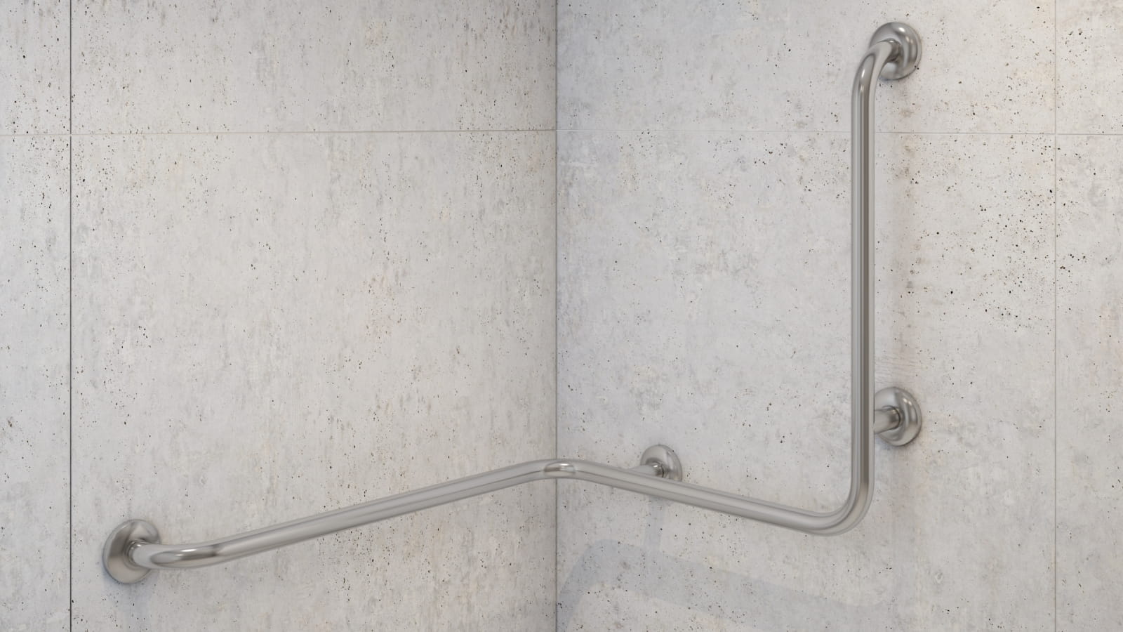 Prezentowana poręcz ma zastosowanie w strefie wannowo prysznicowej. Jej niezawodny element to rurka, która jest wykonana ze stali nierdzewnej AISI 304 o średnicy 32 mm. Interesującym rozwiązaniem jest zastosowanie systemu zatrzaskowego w rozetach maskujących. Pozwala to zamontować rozety bez użycia kleju montażowego.