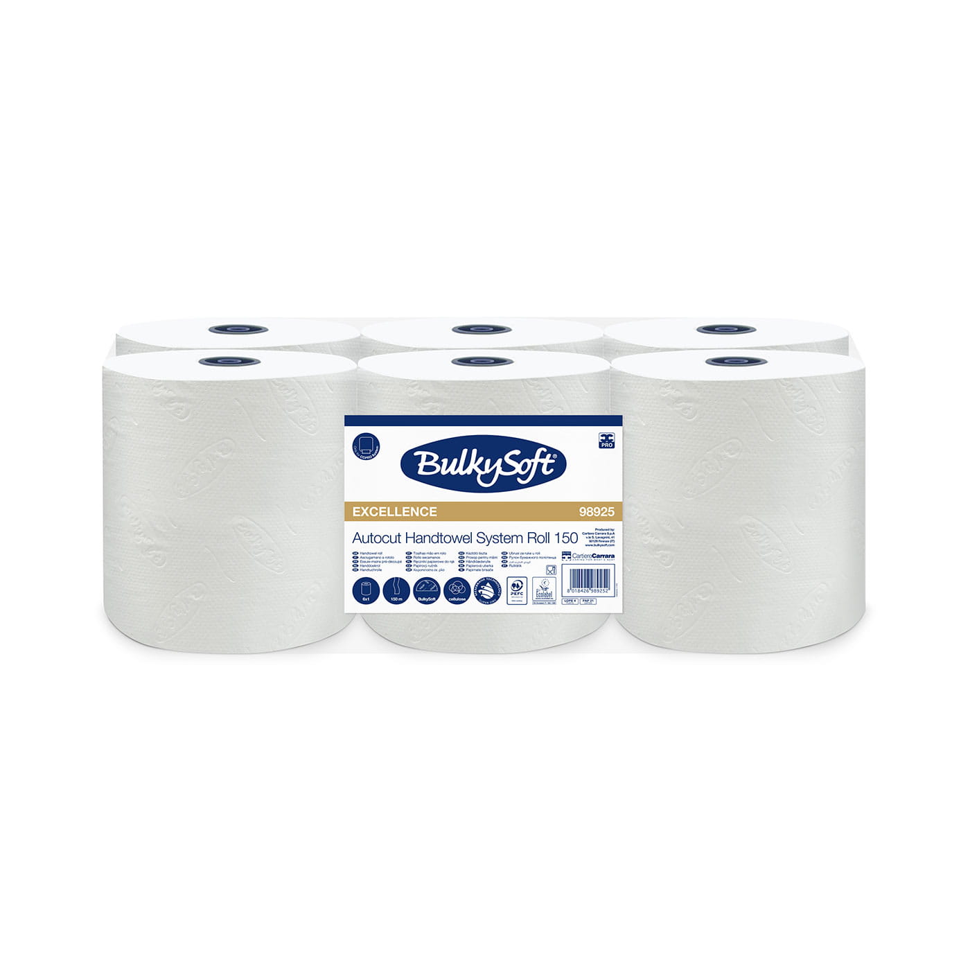 Ręcznik systemowy w roli o długości 150 m to ekskluzywny produkt w grupie ręczników systemowych BulkySoft. Wykonany w 100 % z czystej selekcjonowanej celulozy i złożony aż z 3 warstwy papieru wykonanego w specjalnej technologii Membrane Plus. Dzięki temu ręcznik jest bardzo chłonny, mięsisty i wytrzymały. Dodatkowo jest wyjątkowo miły w dotyku i niezwykle miękki. To najwyższej jakości ręcznik systemowy w ofercie BulktSoft.