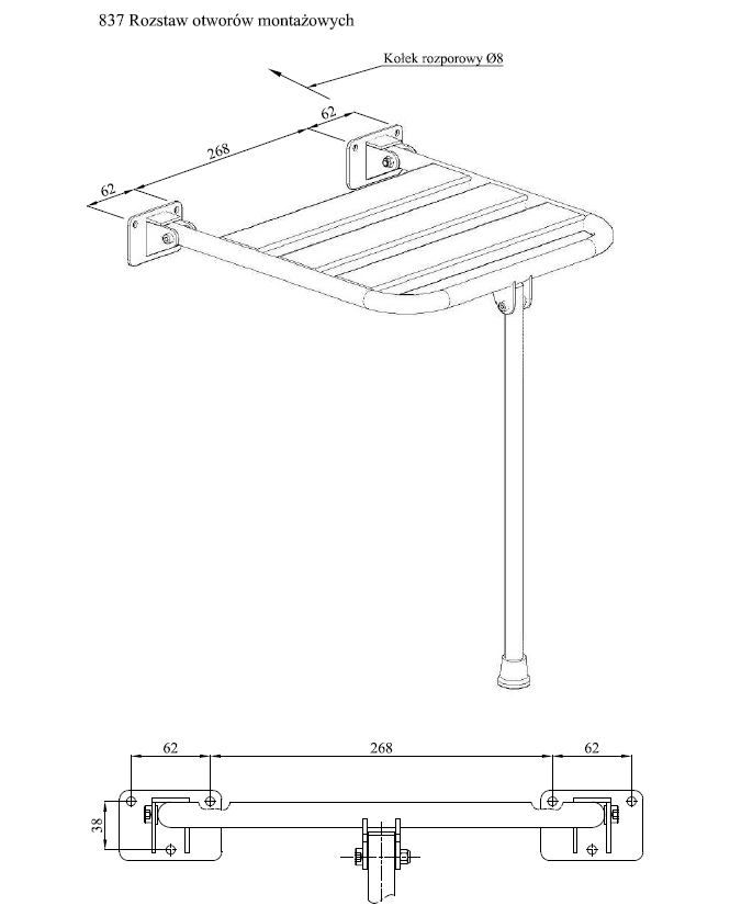 ✅ Dodatkowa składana podpora zwiększa bezpieczeństwo i odciąża uchwyty ścienne.