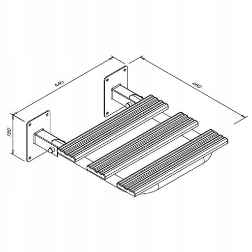 - Wymiary całkowite po rozłożeniu - wysokość 150 mm, szerokość 440 mm, głębokość 460 mm