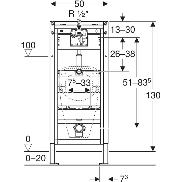 Stelaż podtynkowy Geberit DuofixBasic do pisuaru uniwersalny 130cm, dla armatury podtynkowej