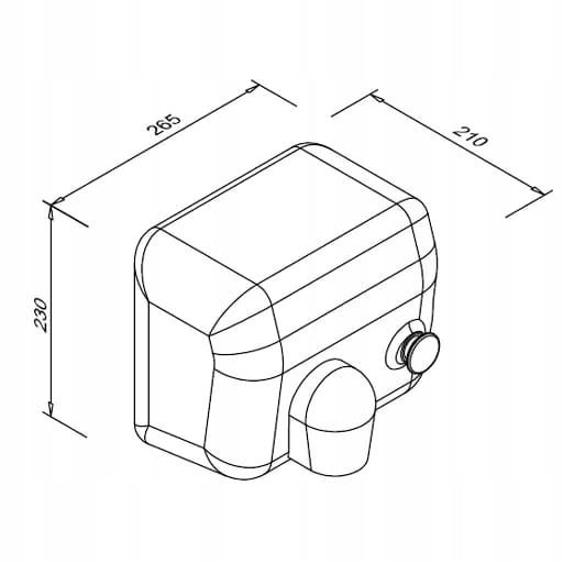 - Wymiary suszarki - wysokość 230 mm, szerokość 265 mm, głębokość 210 mm