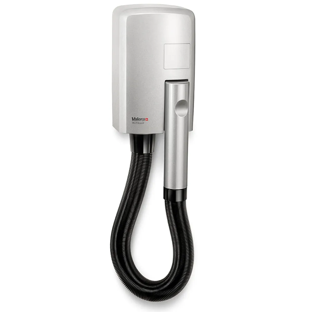 Srebrna suszarka Hotello Valera to podstawowe wyposażenie każdej łazienki hotelowej. Idealne rozwiązanie do hoteli resortowych, konferencyjnych, pensjonatów oraz obiektów agroturystycznych. Montowana na ścianę suszarka do włosów i ciała o mocy 1200 W jest wyposażona w automatyczny wyłącznik czasowy oraz obrotową końcówkę rury zabezpieczającą przed nagrzewaniem (Obudowa spełnia normę IP24). Całość dopełnia łatwy montaż bez potrzeby otwierania obudowy oraz dwa warianty podłączenia elektrycznego: bezpośrednio z sieci elektrycznej lub poprzez elastyczny przewód z wtyczką.