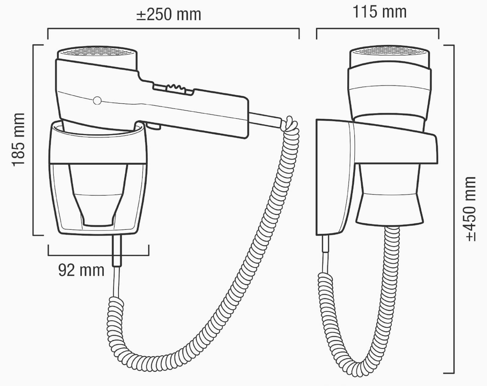 Czarna suszarka ACTION SUPER PLUS 1800 BLACK do włosów to niewielki i elegancki produkt, który idealnie nadaje się jako wyposażenie hotelowych łazienek. Suszarka R501MAX została wyprodukowana w Szwajcarii oraz nadaje się do montażu ściennego.