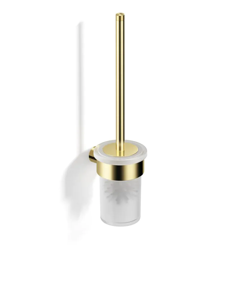 Stylowa i funkcjonalna szczotka toaletowa wisząca to praktyczny element wyposażenia każdej łazienki i toalety. Wykonana z metalu o powierzchni złoty champagne szczotkowany oraz szkła matowego, łączy elegancję i trwałość. Pojemnik mocowany jest w uchwycie za pomocą uszczelki z tworzywa, co zapewnia stabilność i estetykę.
