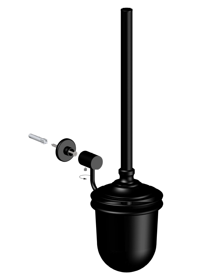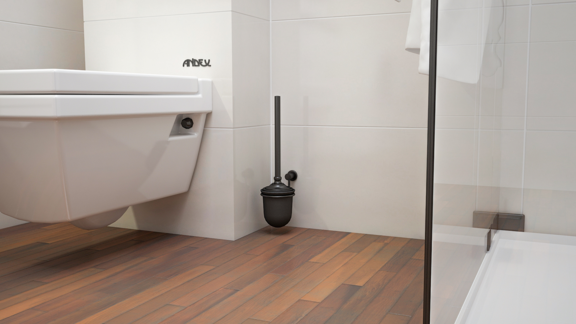 Szczotka naścienna do WC z osłonką czarna z plastikowym pojemnikiem