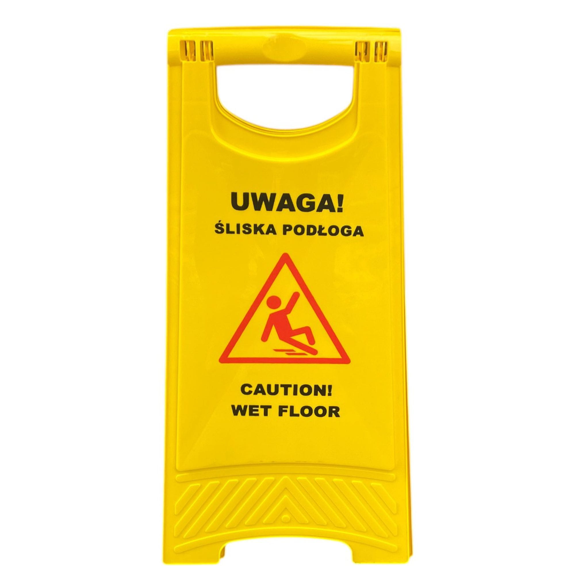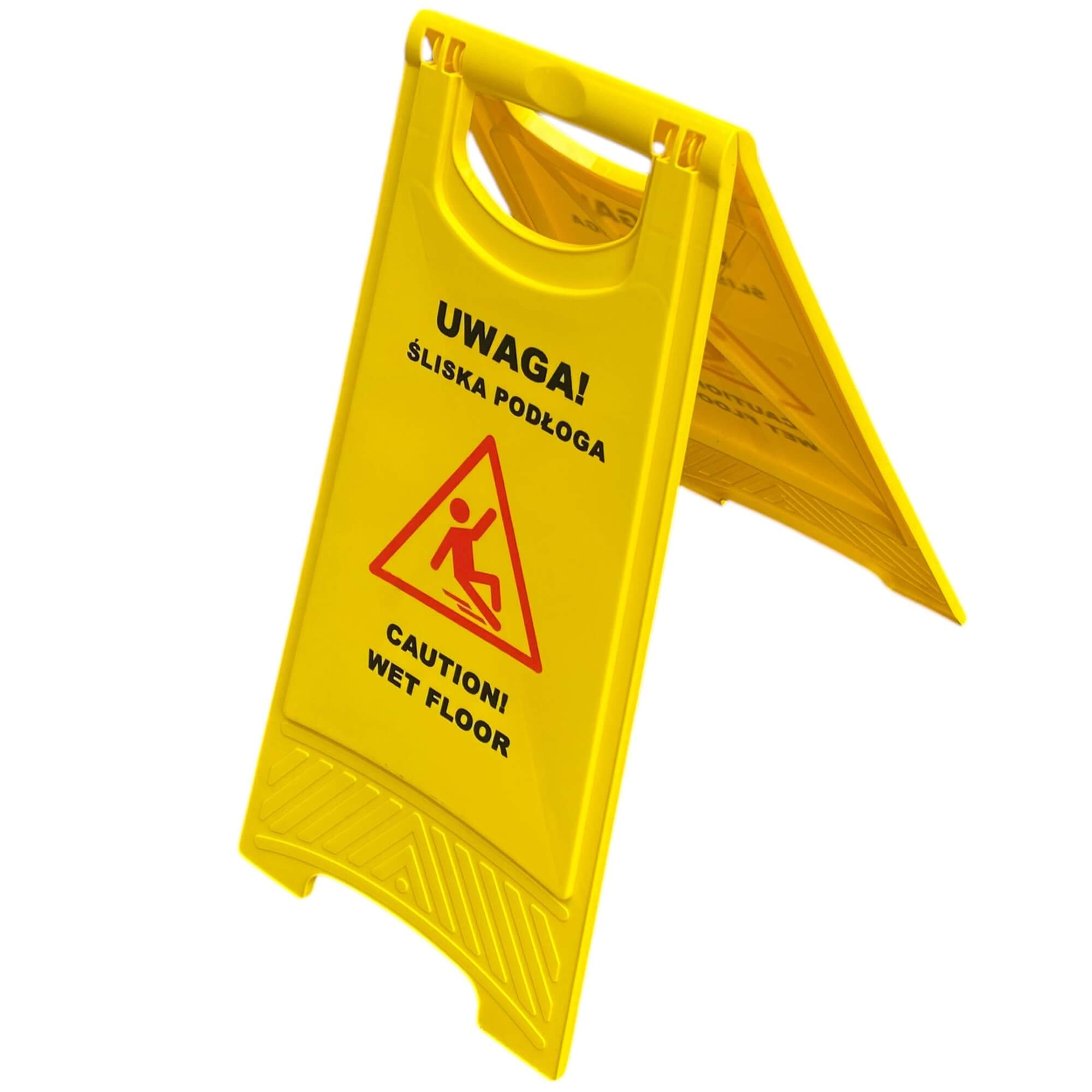 Tablica Ostrzegawcza 2 kolory Potykacz Stojak Uwaga Śliska Podłoga Żółta ver. PL-ANG