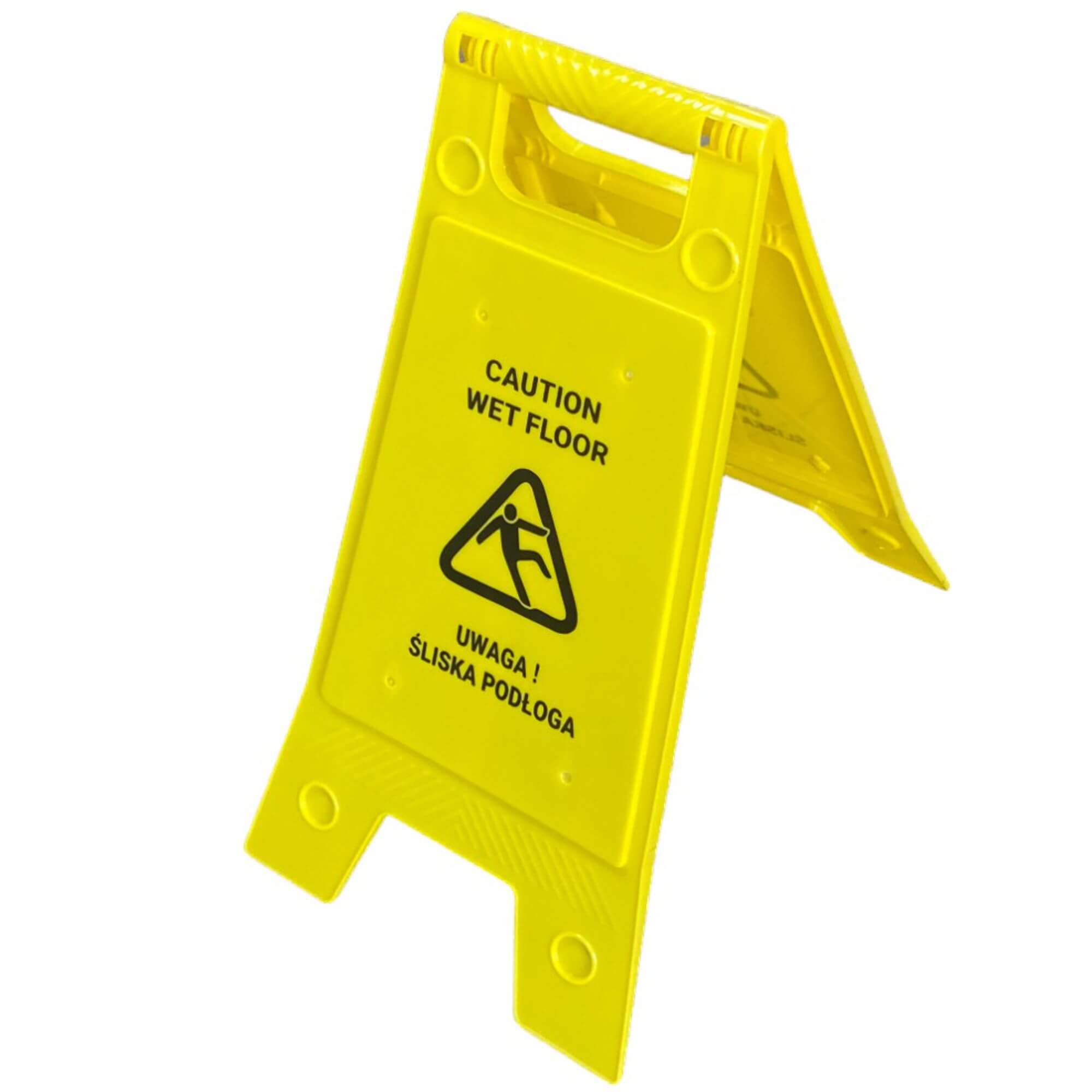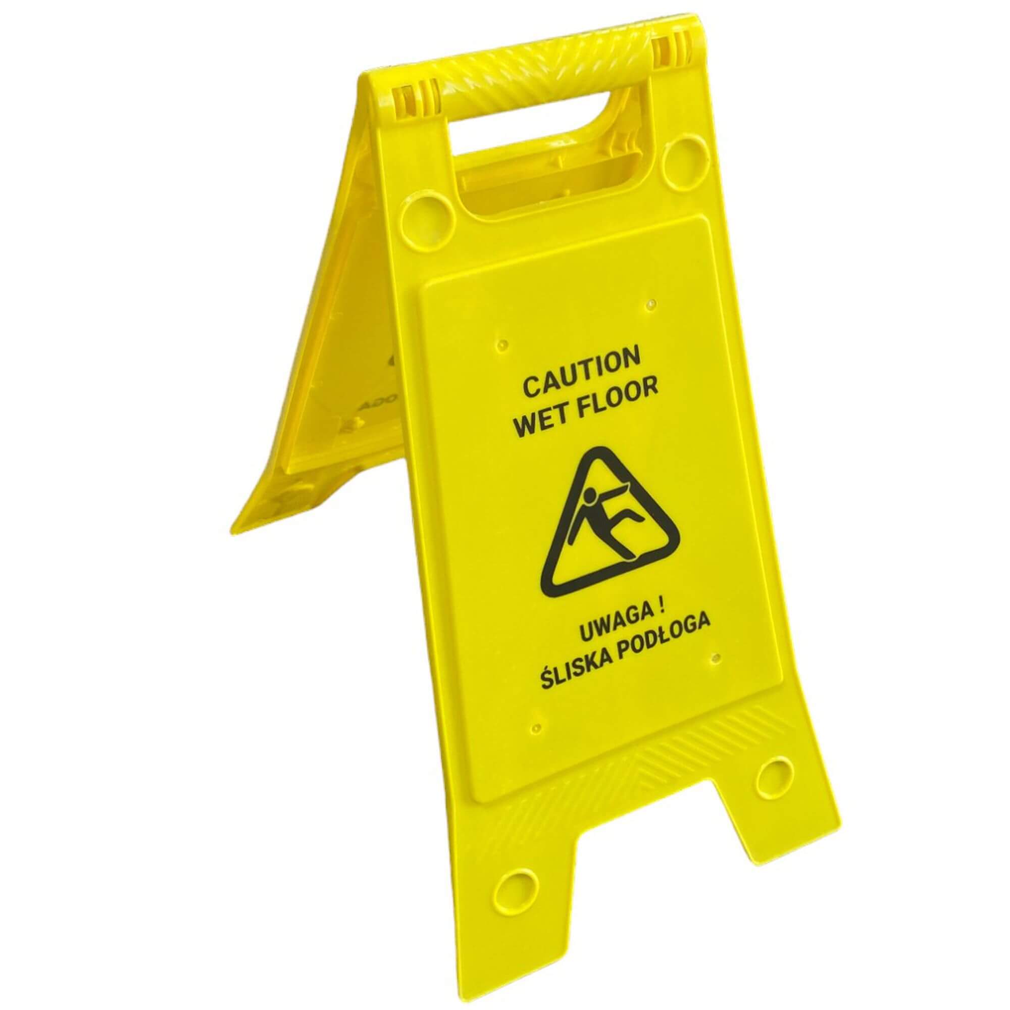 Tablica Ostrzegawcza Potykacz Stojak Uwaga Śliska Podłoga Żółta ver. PL-ANG Nadruk Czarny