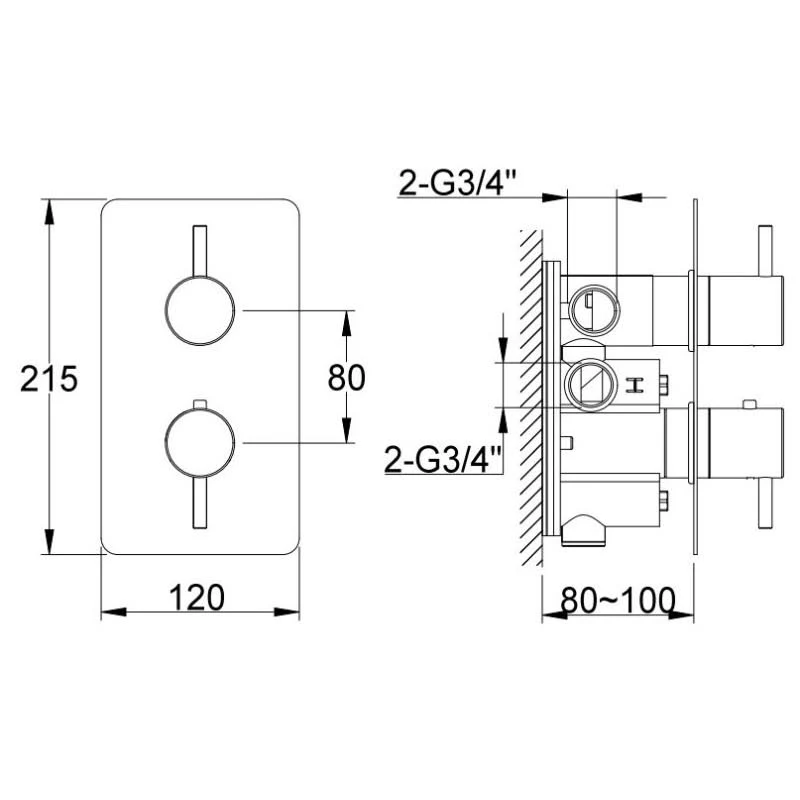 Termostatyczna podtynkowa bateria wannowo-prysznicowa z dwoma wyjściami AXEL GRAY QW432AG Kohlman