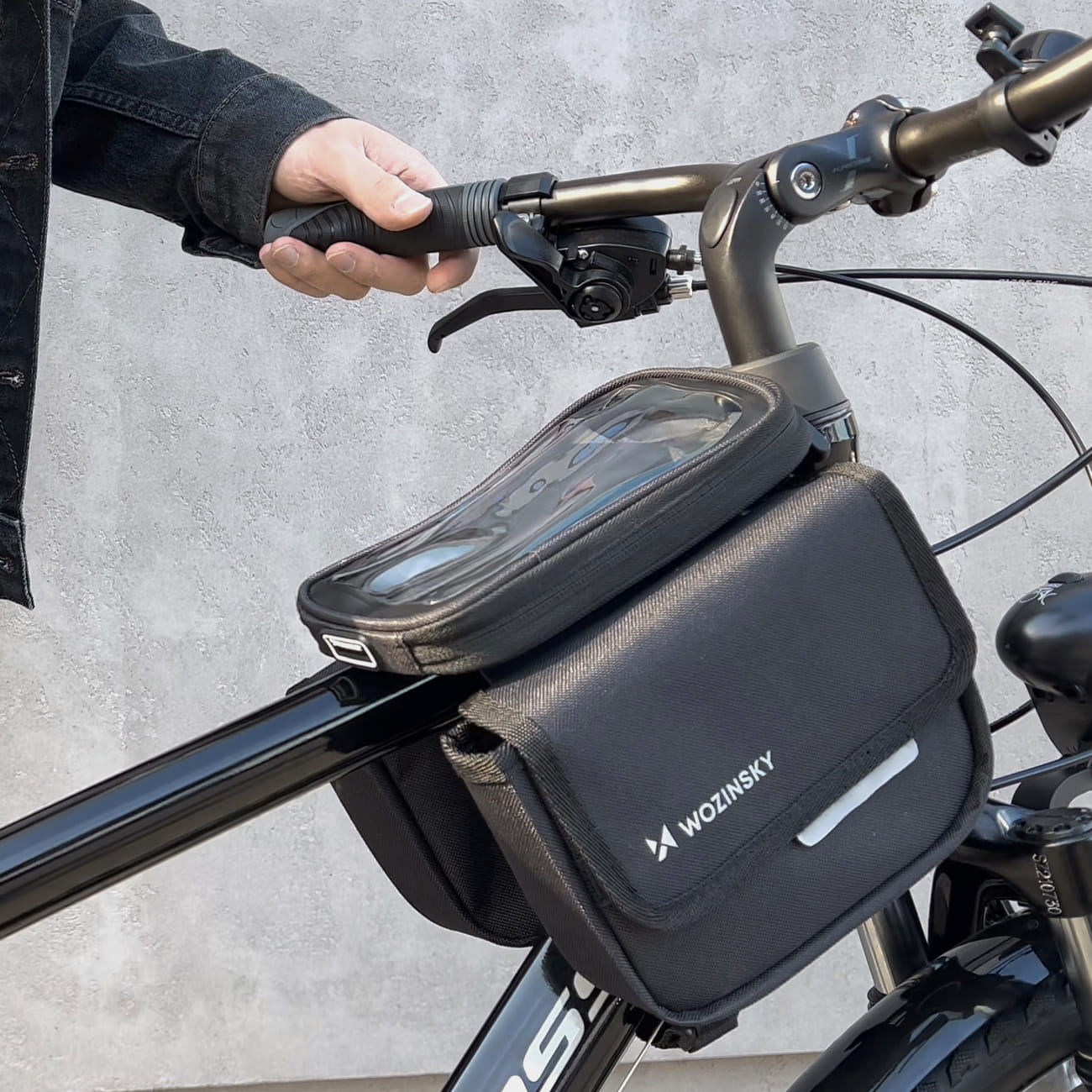 - Łatwo obsłużysz telefon, sprawdzisz trasę i przechowasz najpotrzebniejsze rzeczy. To pakowna torba rowerowa na ramę z czułą na dotyk folią chroniącą smartfon