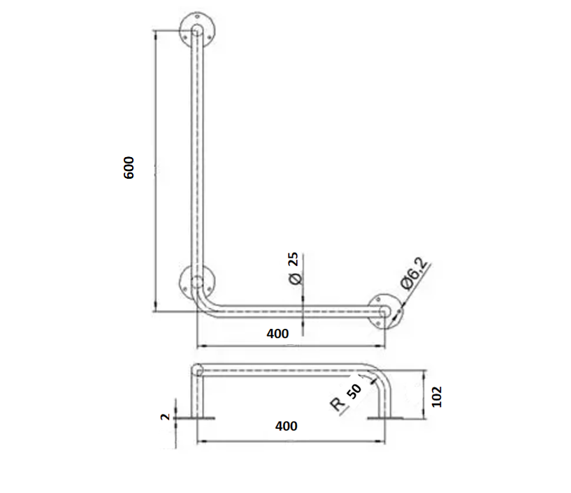 Uchwyt dla niepełnosprawnych kątowy lewy 60/40 cm Ø25 mm Biały