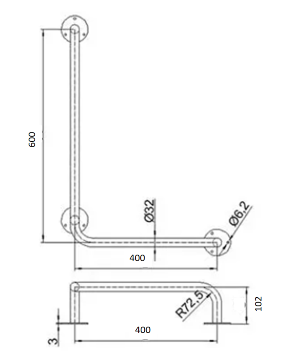 Poręcz dla niepełnosprawnych kątowa lewa 60/40 cm Ø32 mm Biała