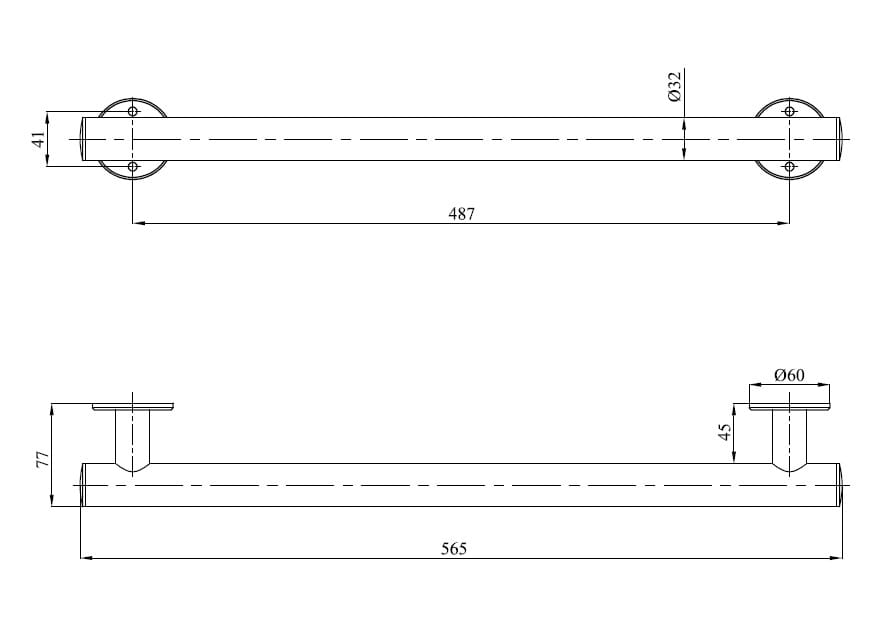 ✅ Wymiary: 565 mm x 60 mm x 77 mm, rura fi 32