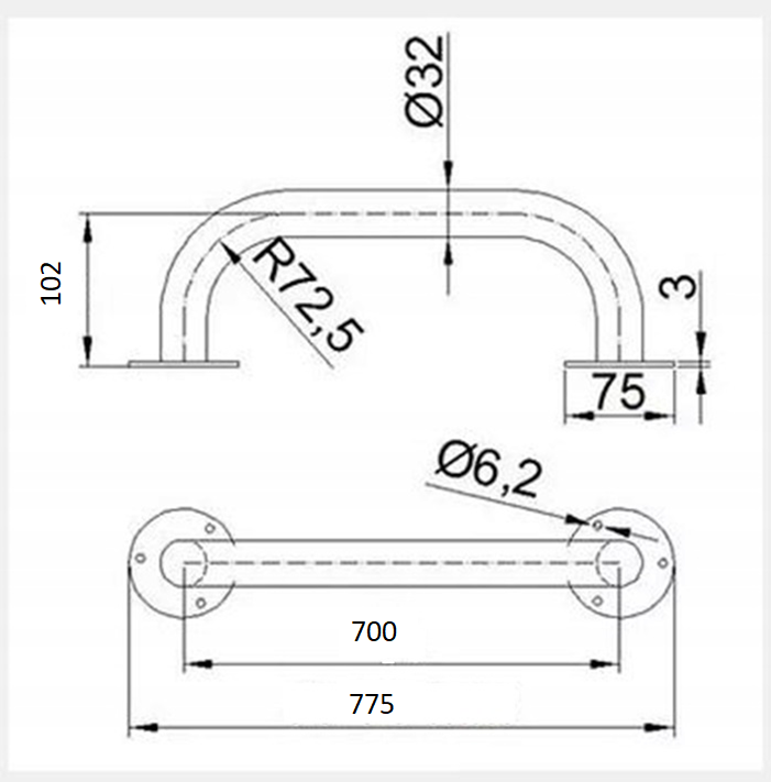 Uchwyt łazienkowy prosty 70cm Ø 32mm stal nierdzewna