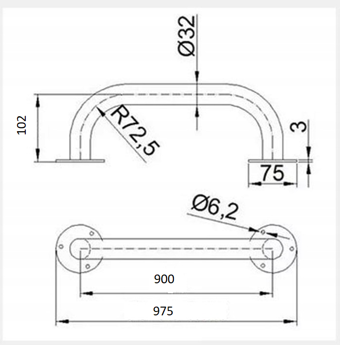 Uchwyt łazienkowy prosty 90cm Ø 32mm stal nierdzewna