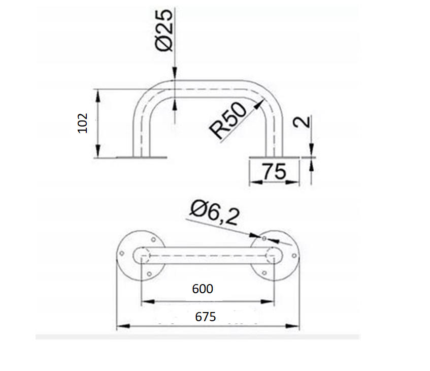 Uchwyt łazienkowy prosty stal nierdzewna 60cm Ø 25mm