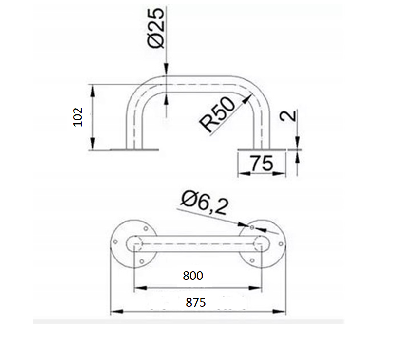 Uchwyt łazienkowy prosty stal nierdzewna 80cm Ø 25mm