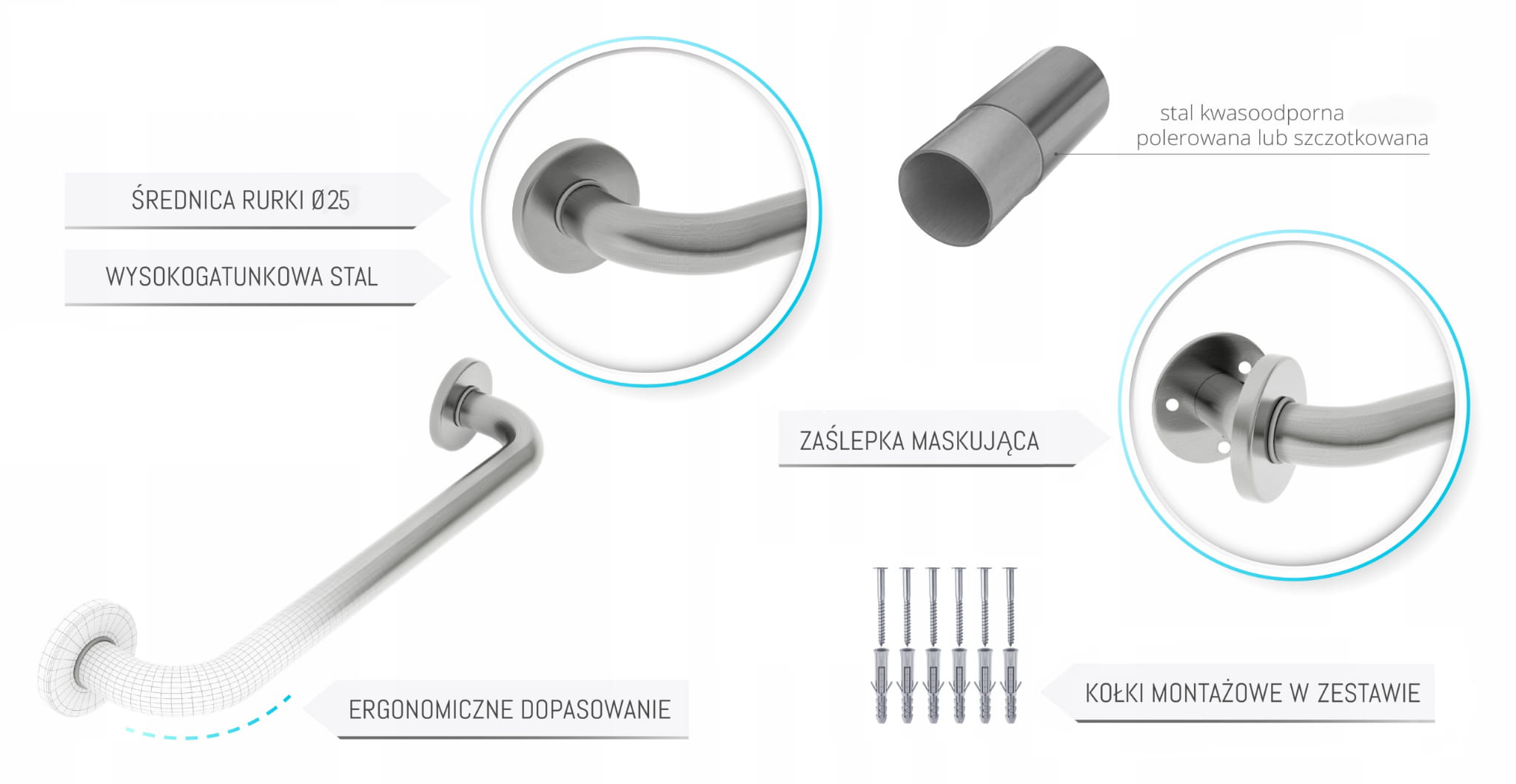 Stalowy uchwyt łazienkowy, poręcz do wanny lub pod prysznic dla niepełnosprawnych seniora - długość 600 mm