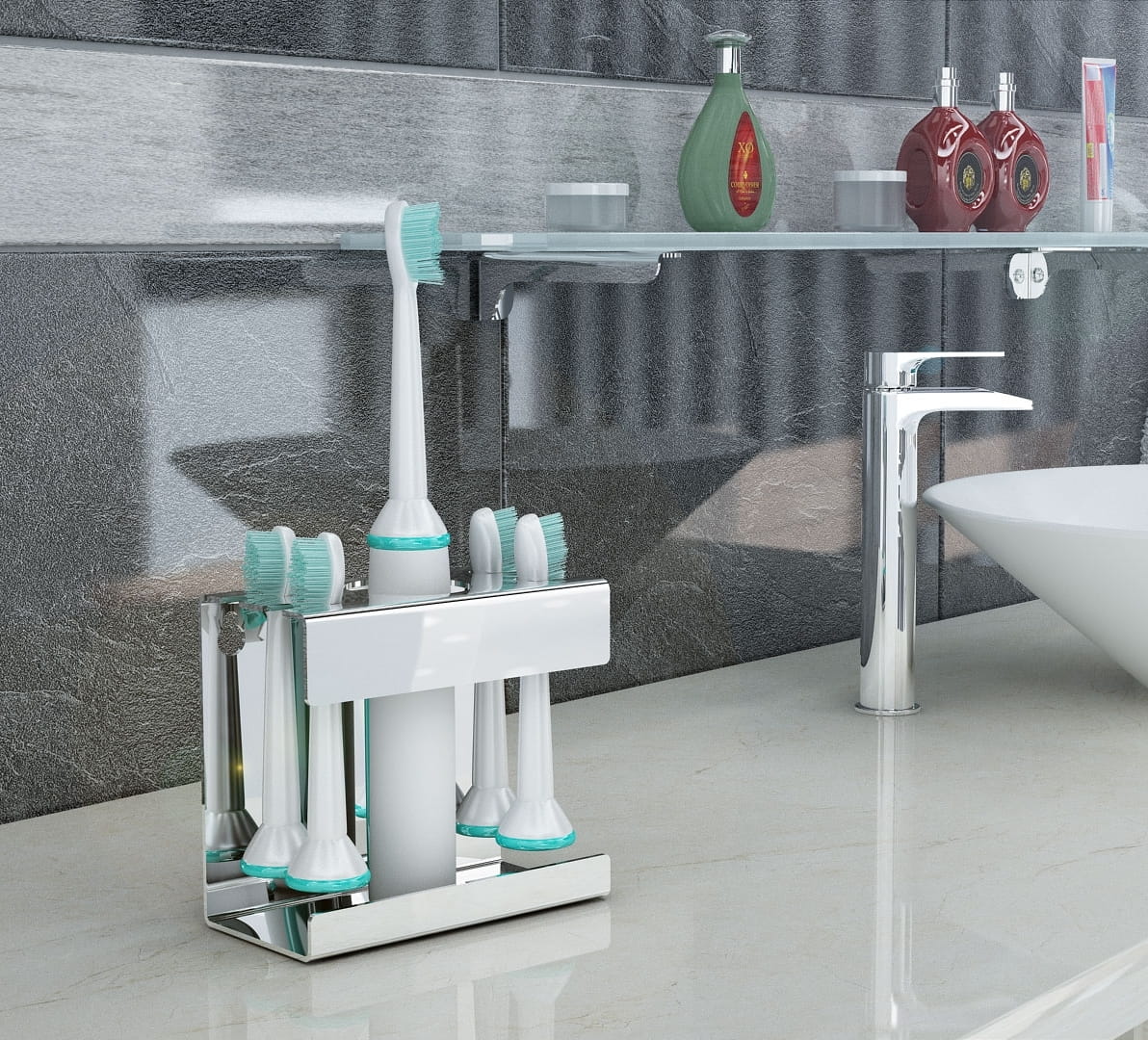 Uchwyt na szczoteczkę elektryczną i 4 końcówki TECHNIC 338/SG INOX