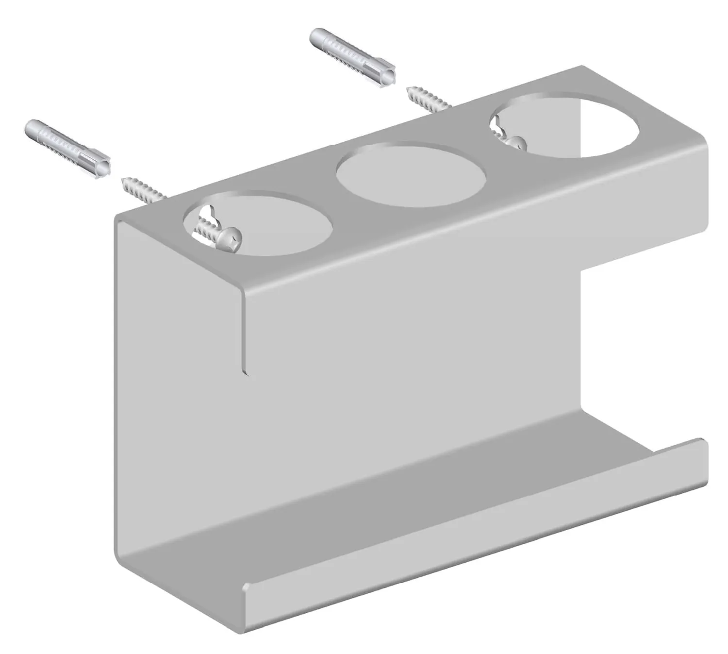- Uchwyt można powiesić na ścianie wykorzystując wkręty i kołki lub postawić na blacie przyklejając samoprzylepne silikonowe podkładki antypoślizgowe