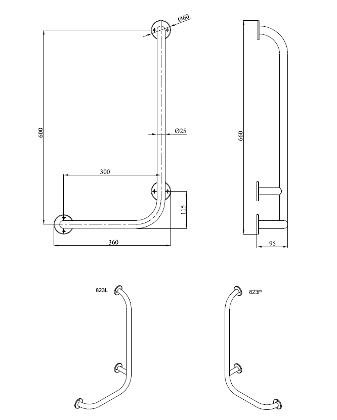 ✅ Wymiary: 360 mm x 660 mm x 95 mm, rura Ø25