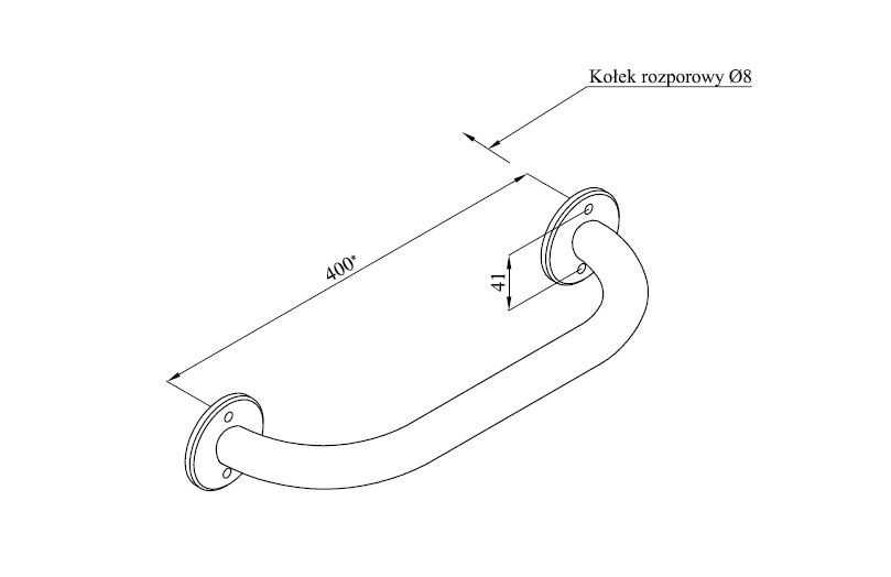 Uchwyt naścienny prosty 40 cm fi 25 stal nierdzewna Połysk