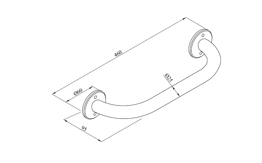 ✅ Wymiary: 460 mm x 60 mm x 95 mm, rura Ø25