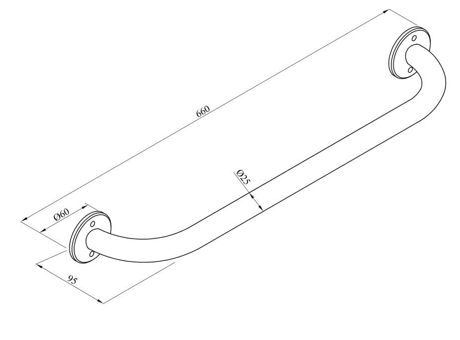 ✅ Wymiary: 660 mm x 60 mm x 95 mm, rura fi 25