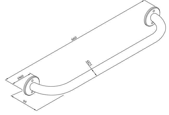 ✅ Wymiary: 660 mm x 60 mm x 95 mm, rura Ø25 x 2