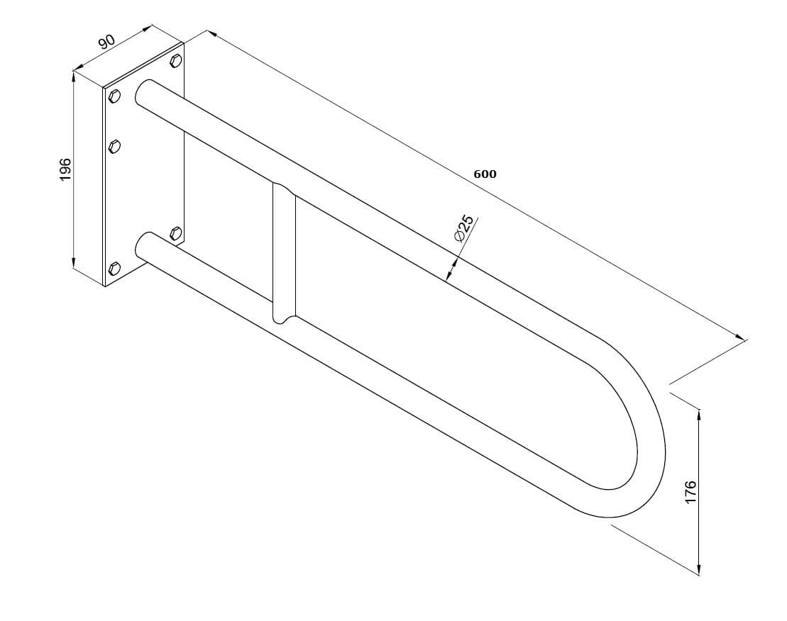 - Wymiary: 90 mm x 196 mm x 600 mm, rura Ø25 x 2
