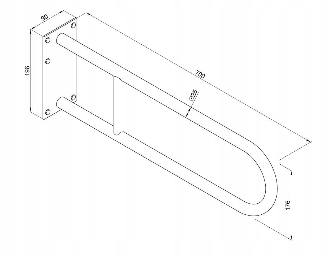 - Wymiary: 90 mm x 196 mm x 700 mm, rura Ø25