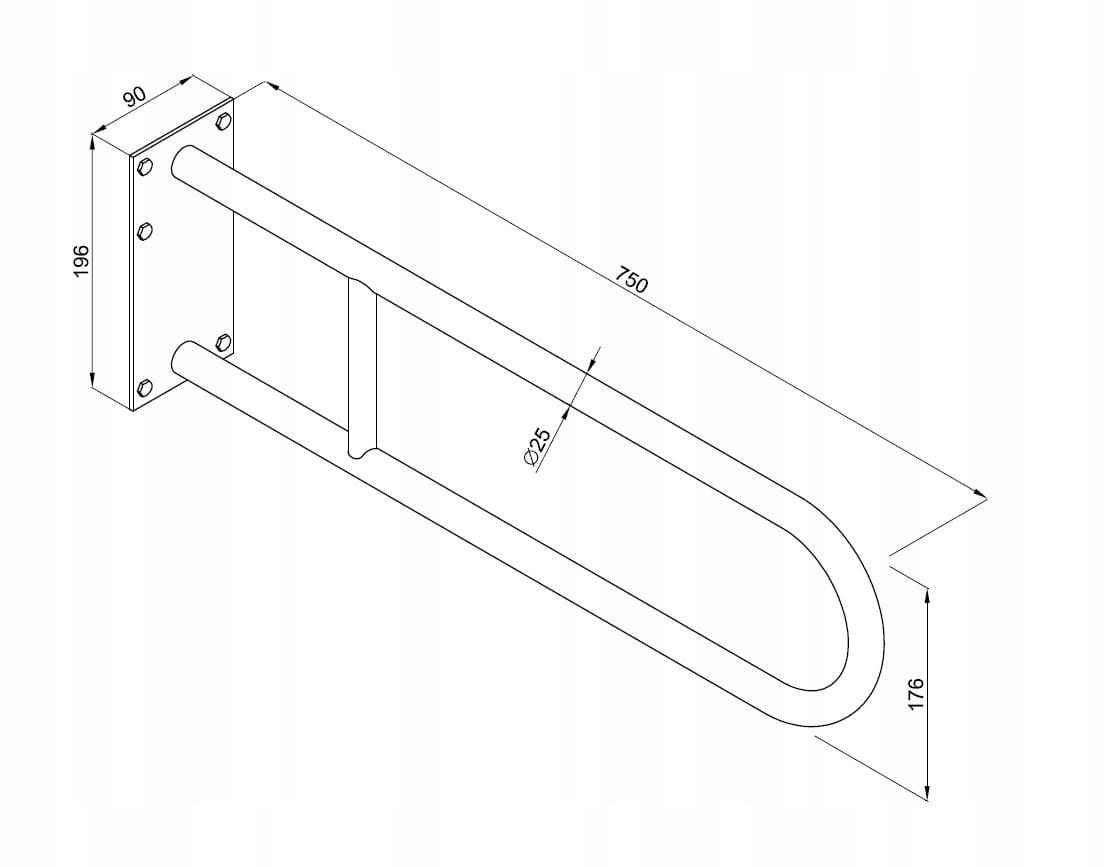 - Wymiary: 90 mm x 196 mm x 750 mm, rura Ø25 x 2