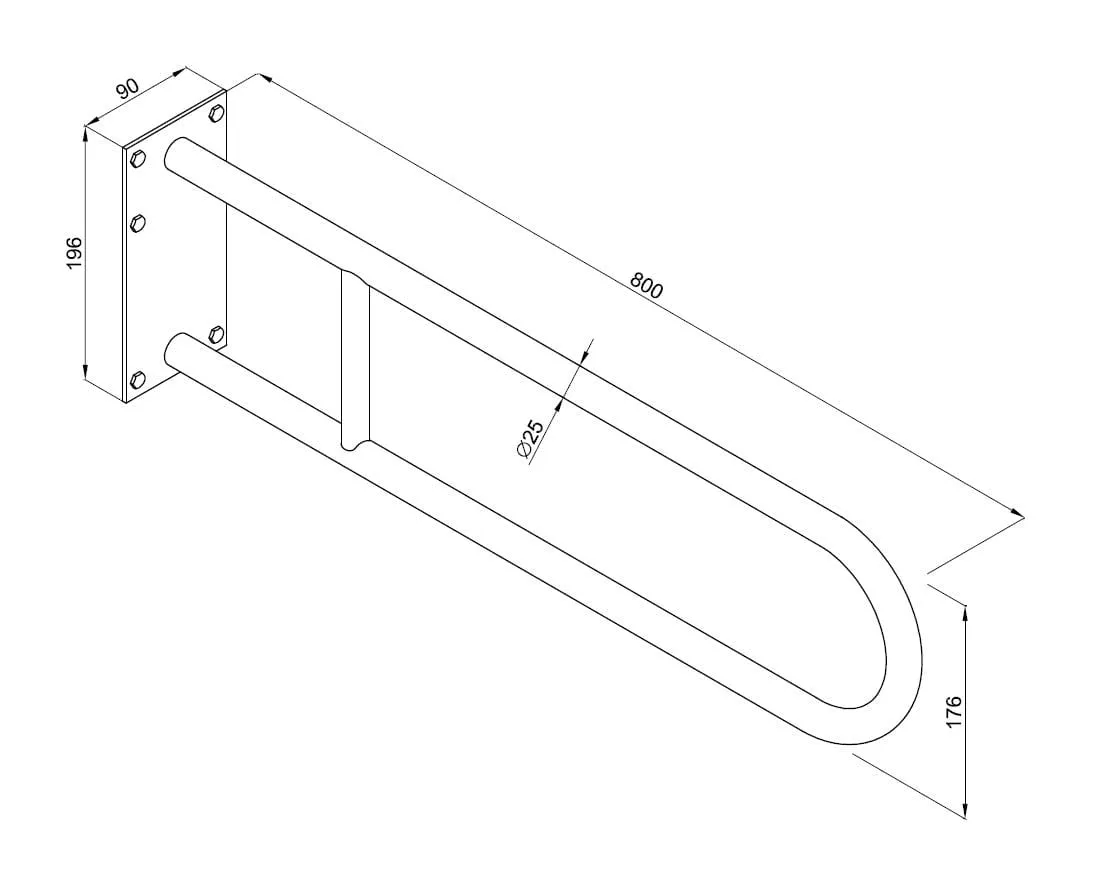 - Wymiary: 90 mm x 196 mm x 800 mm, rura Ø25 x 2