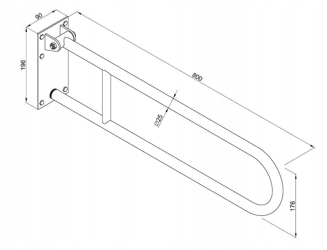 Uchwyt półokrągły ANDEX uchylny z płytą 80cm fi25 stal nierdzewna Biały