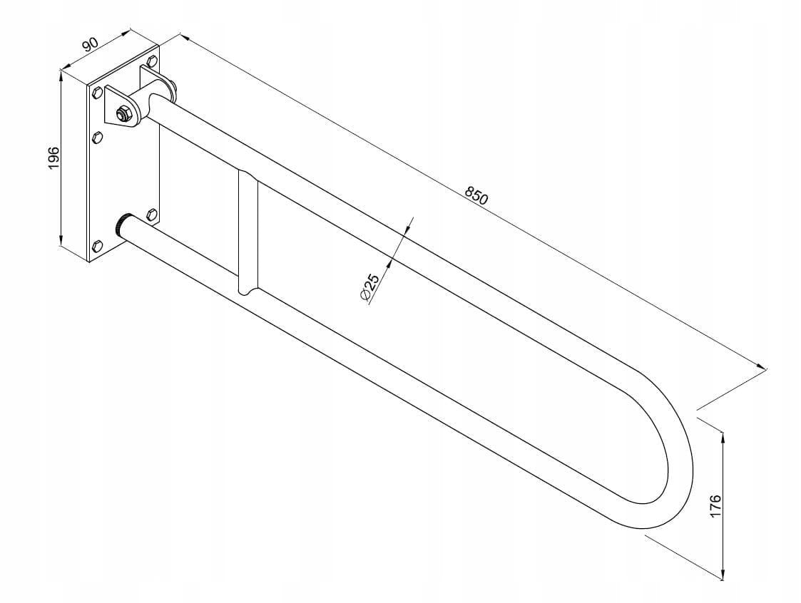 Uchwyt półokrągły ANDEX uchylny z płytą 85cm fi25 stal nierdzewna Biały