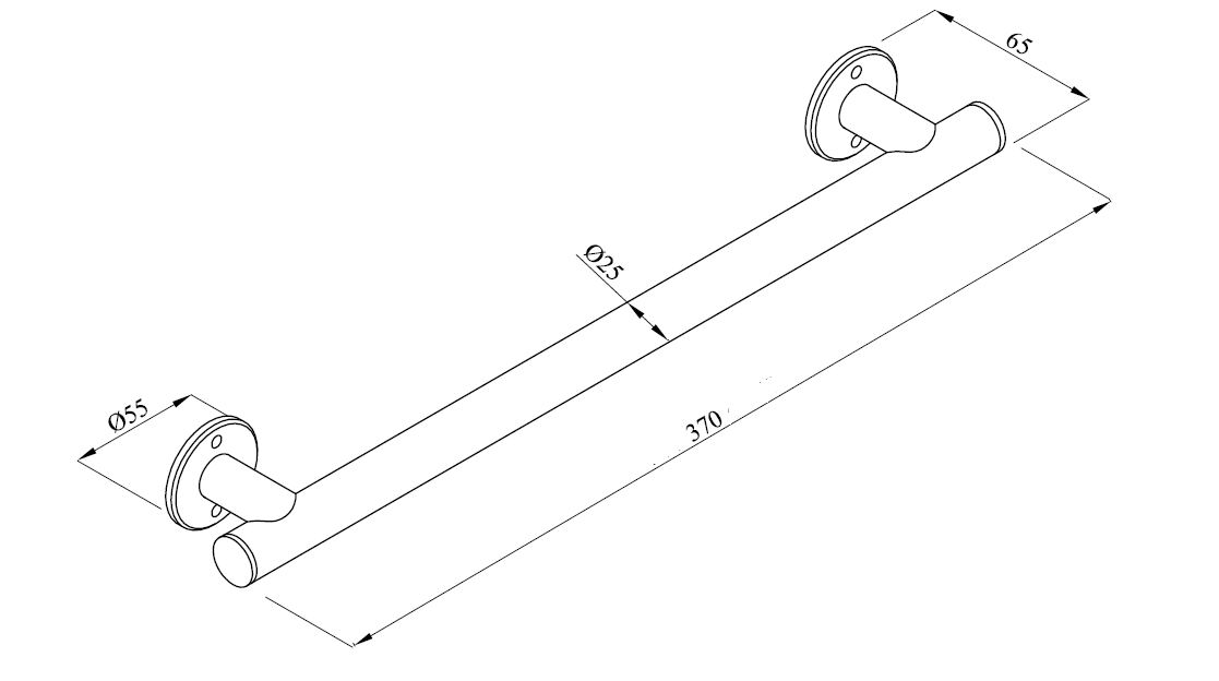 ✅ Wymiary: 370 mm x 55 mm x 65 mm, rura fi 25