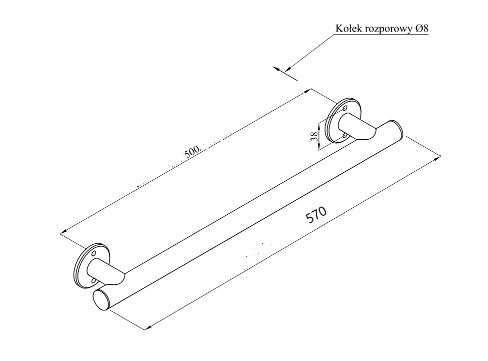 ✅ Wymiary: 570 mm x 55 mm x 65 mm, rura fi 25