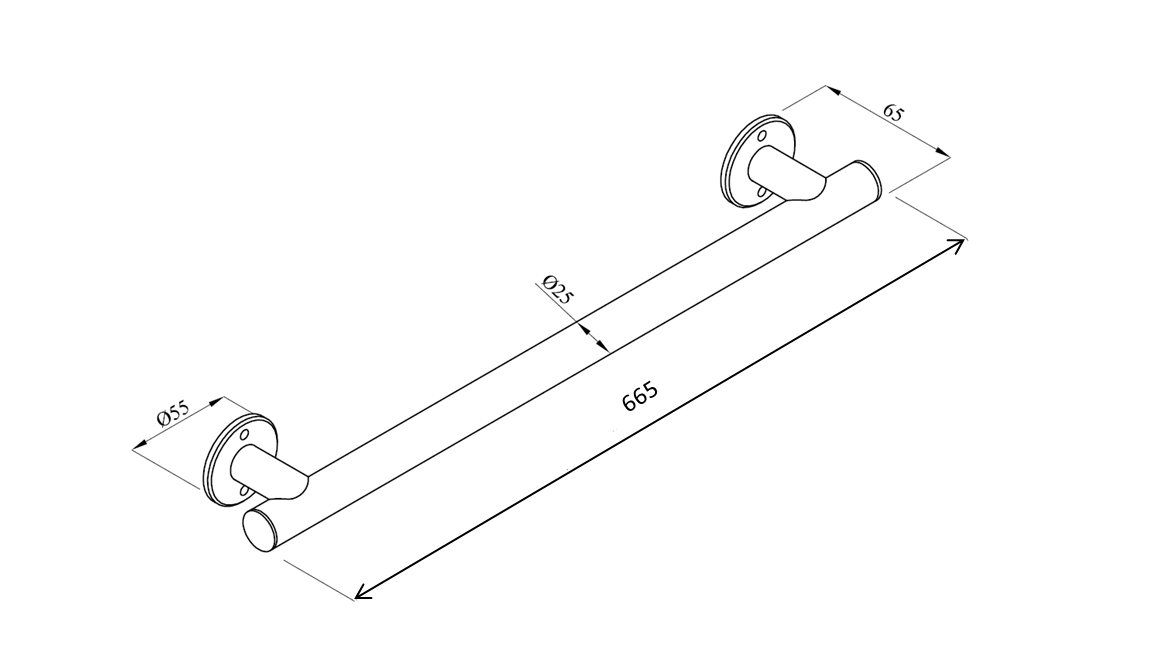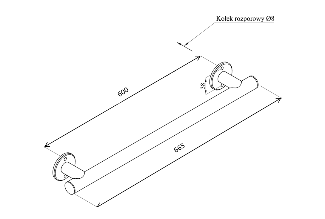 ✅ Wymiary: 665 mm x 55 mm x 65 mm, rura fi 25