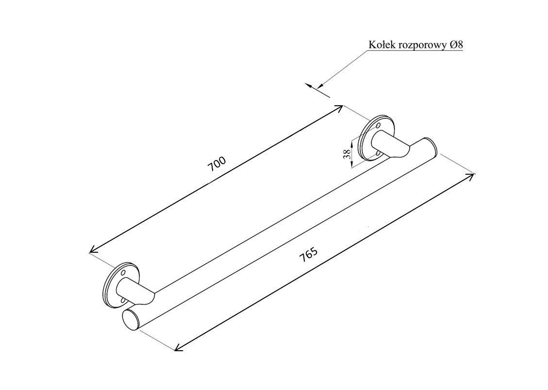 ✅ Wymiary: 765 mm x 55 mm x 65 mm, rura fi 25