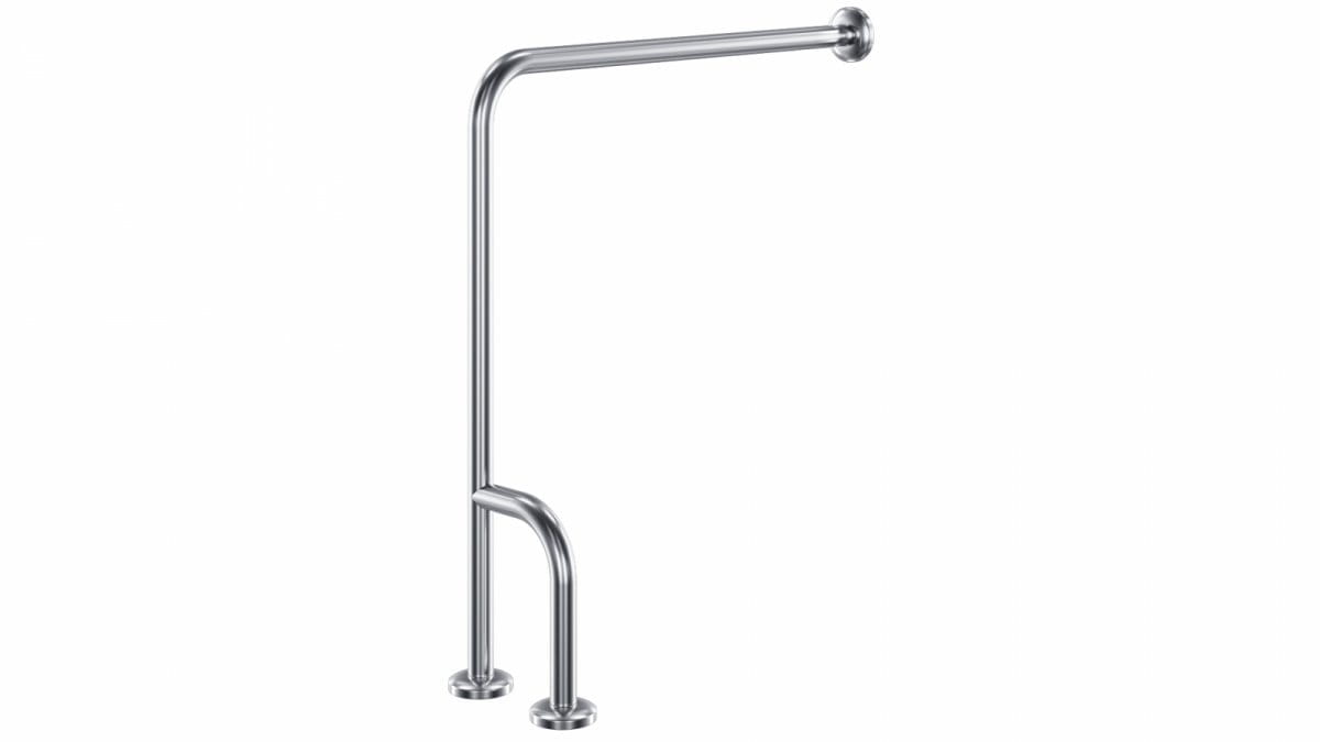 Uchwyt dla niepełnosprawnych ścienno podłogowy lewy 80/80 cm Ø25 mm Stal Nierdzewna