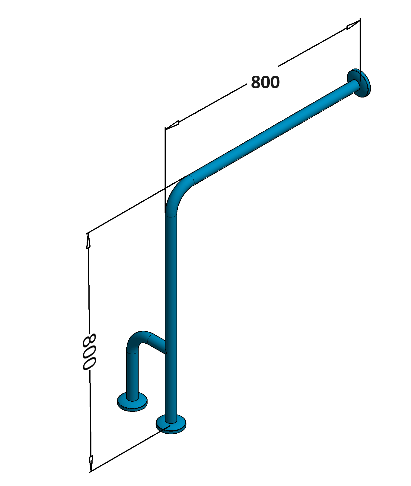 Uchwyt dla niepełnosprawnych ścienno podłogowy prawy 80/80 cm Ø25 mm Stal Nierdzewna