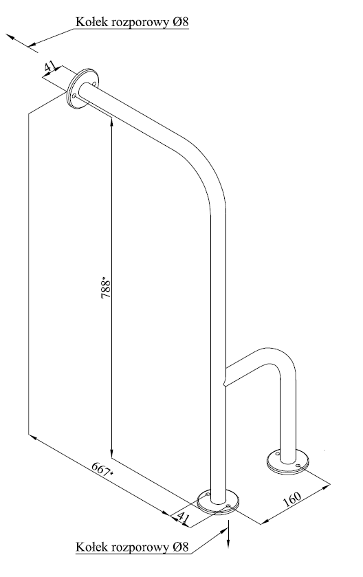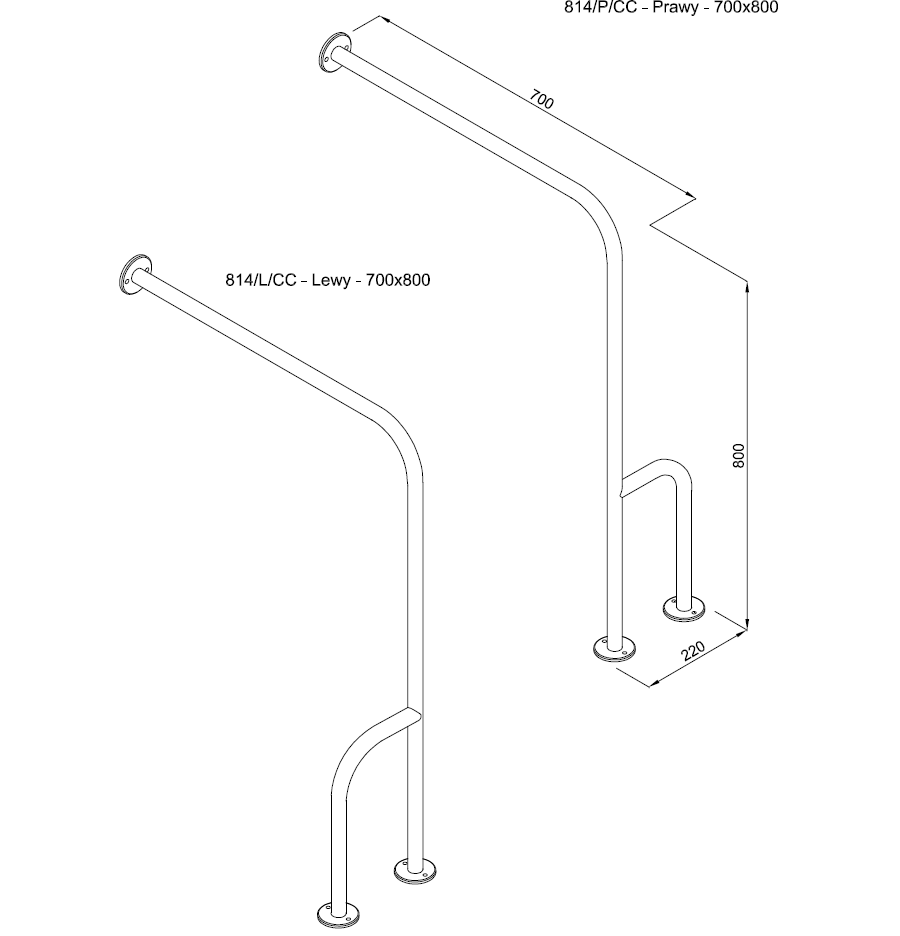 Uchwyt ścienno-podłogowy prawy 700 X 800 cm stal nierdzewna