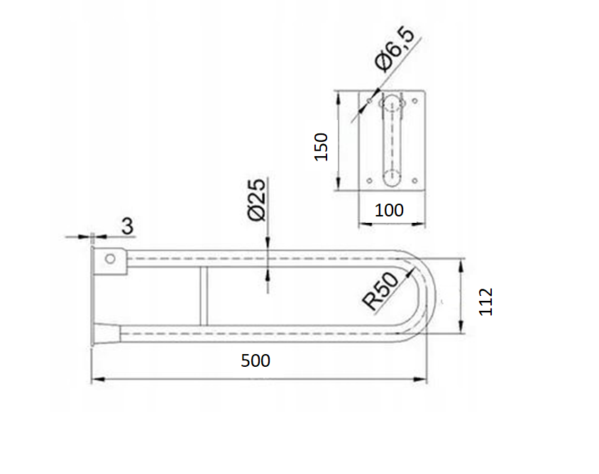 Uchwyt uchylny łukowy do WC 50cm Ø 25 Biały
