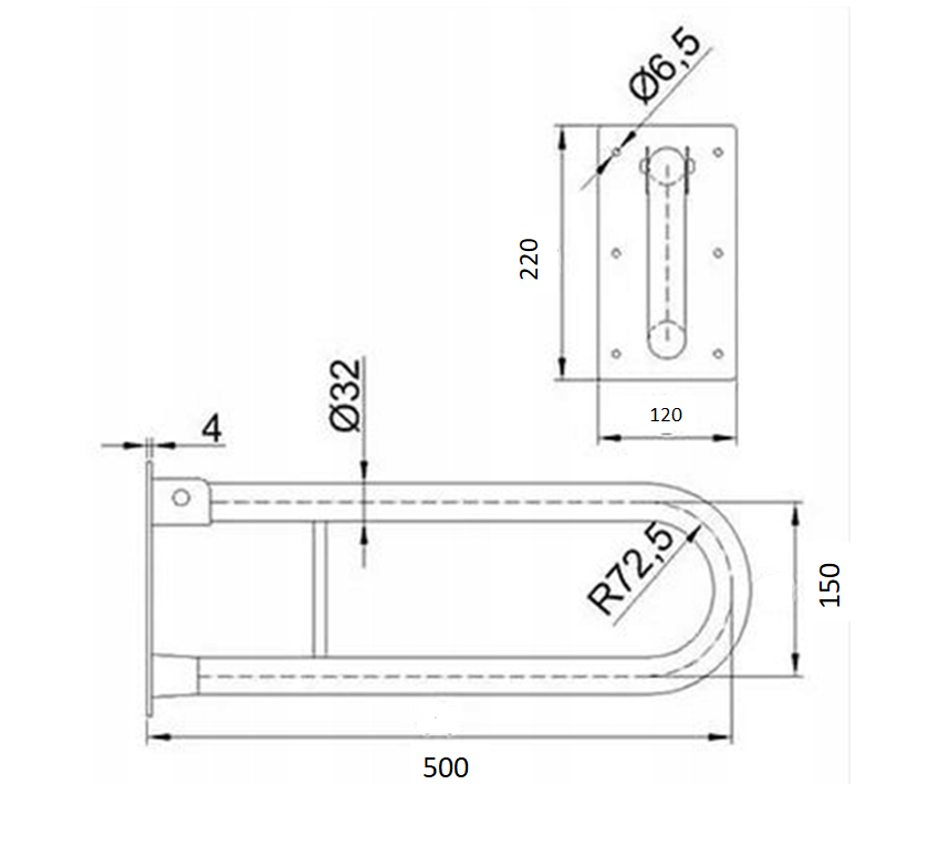 Uchwyt uchylny łukowy do WC 50cm Ø 32 BIAŁY