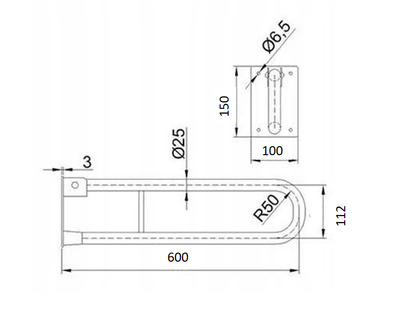 Uchwyt uchylny łukowy do WC 60cm Ø 25 Czarny