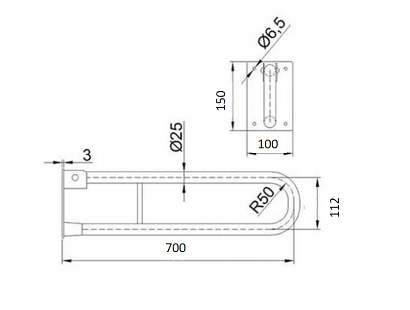 Uchwyt uchylny łukowy do WC 70cm Ø 25 Biały